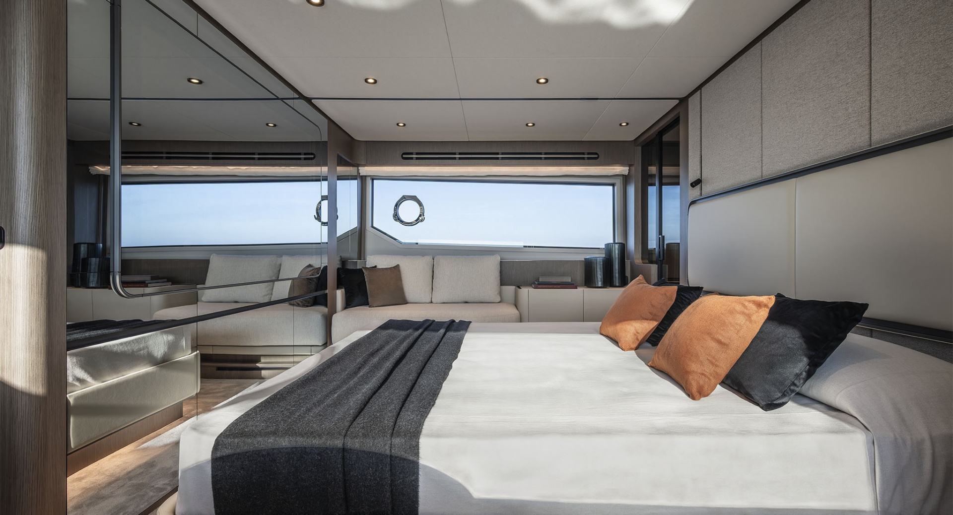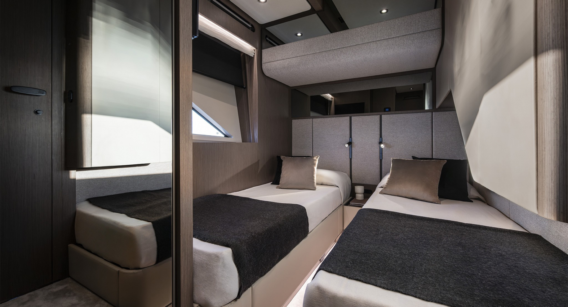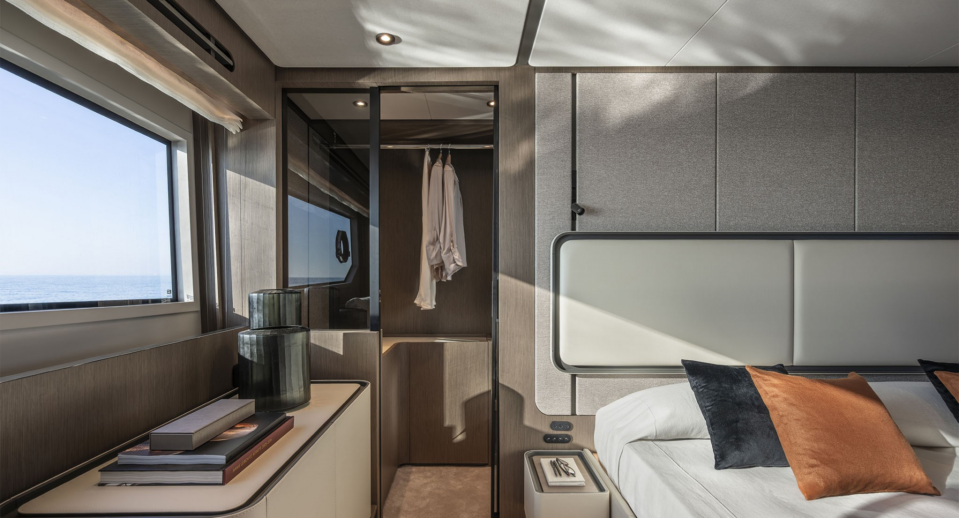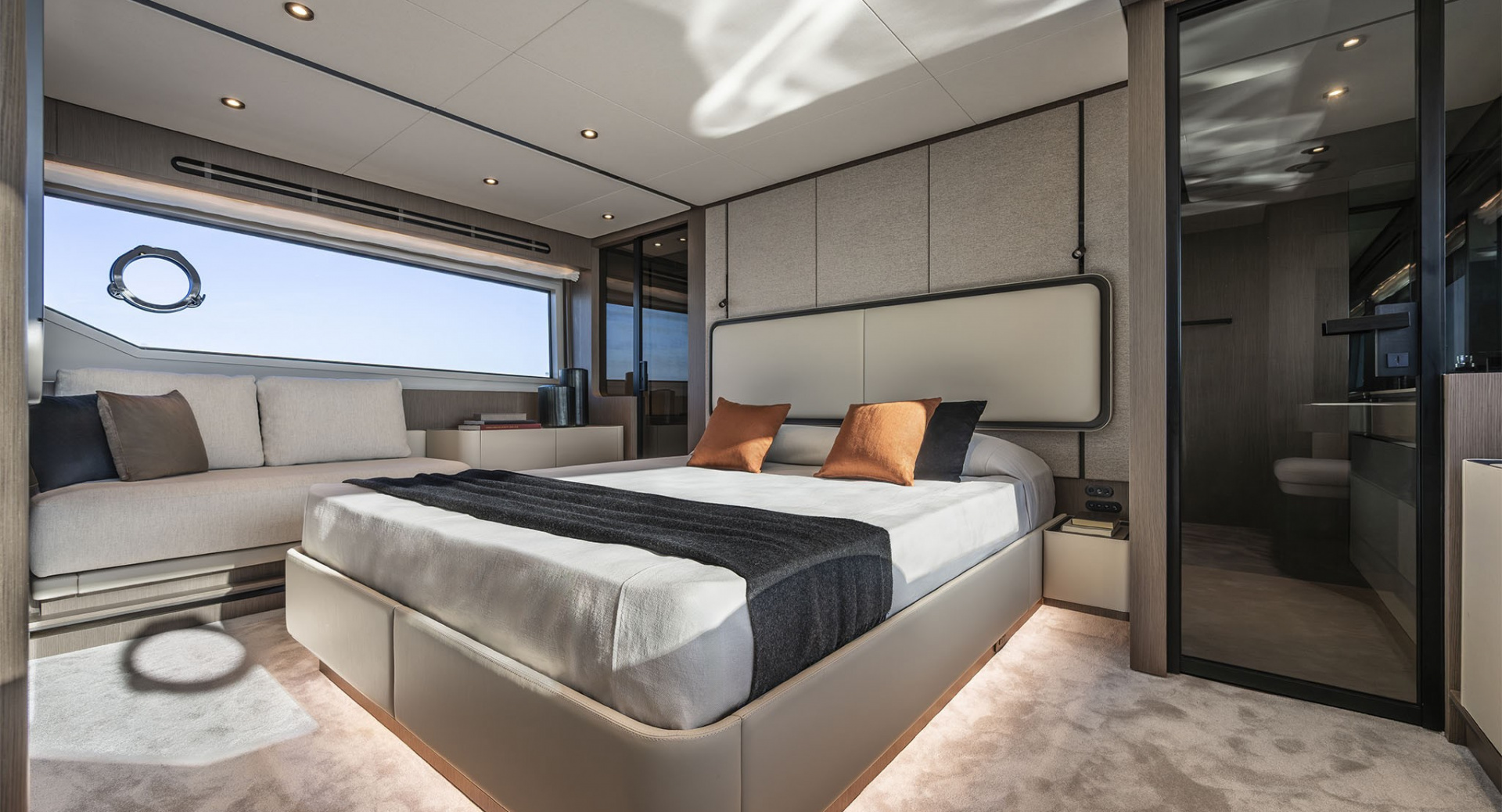 В мастер–каюте выделены отдельные помещения под гардероб и ванную комнату. Топливные баки расположены перед машинным отделением, создавая дополнительную шумоизоляцию для владельца.